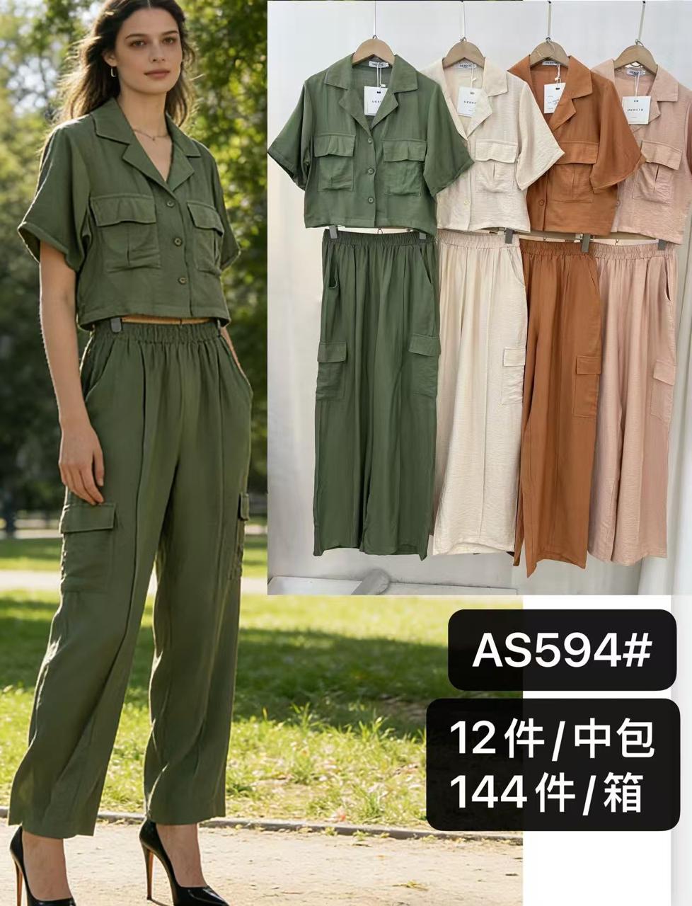 Conjunto de camisa cropped con bolsillos y pantalón cargo-AS594