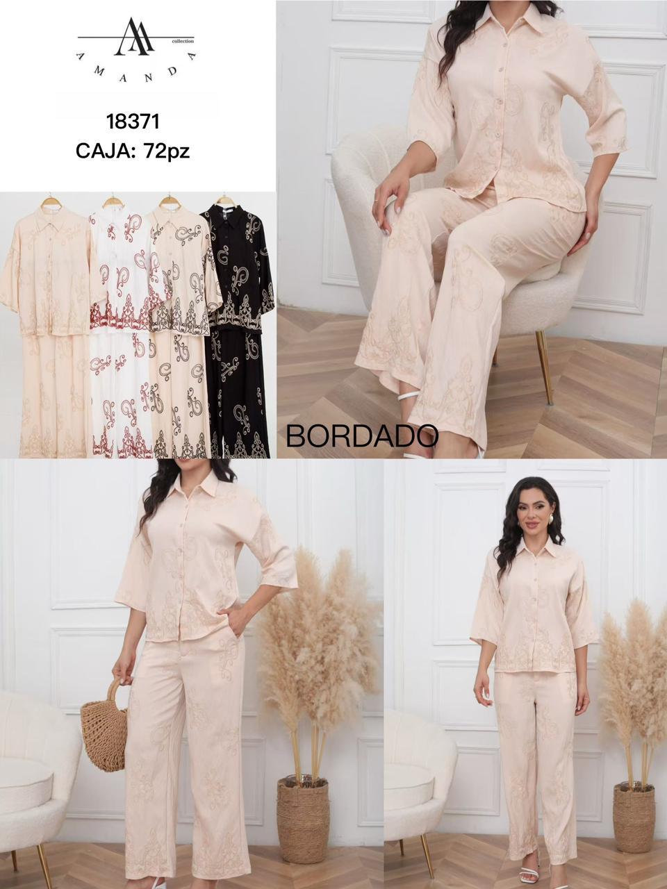 Conjunto de camisa y pantalón bordado para mujer-18371