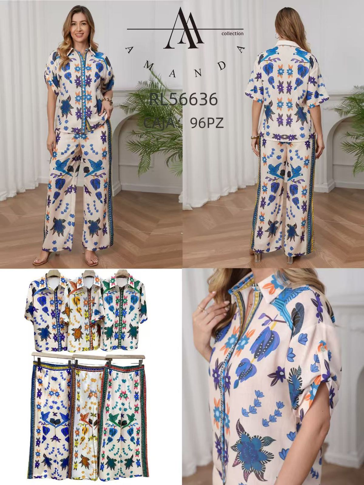 Conjunto de camisa y pantalón estampado floral para mujer-RL56636