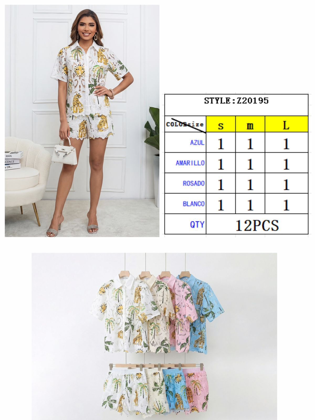 Conjunto de camisa y short con estampado tropical-Z20195