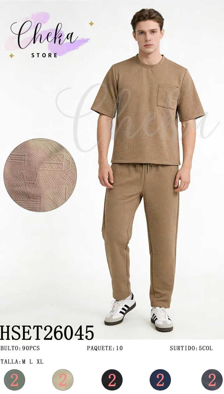 Conjunto de camiseta y pantalón jogger texturizado-HSET26045