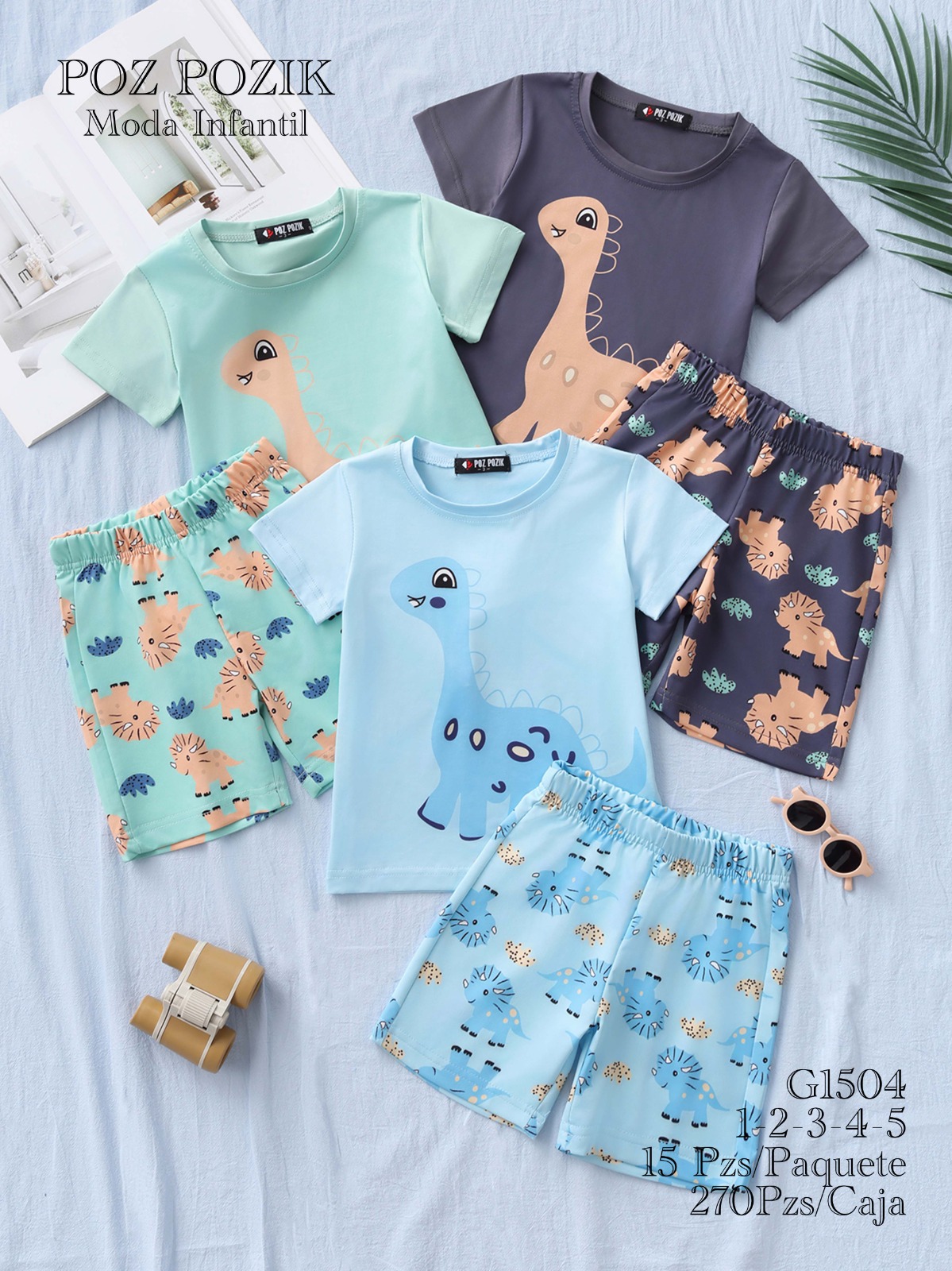 Conjunto de camiseta y shorts con estampado de dinosaurios-G1504