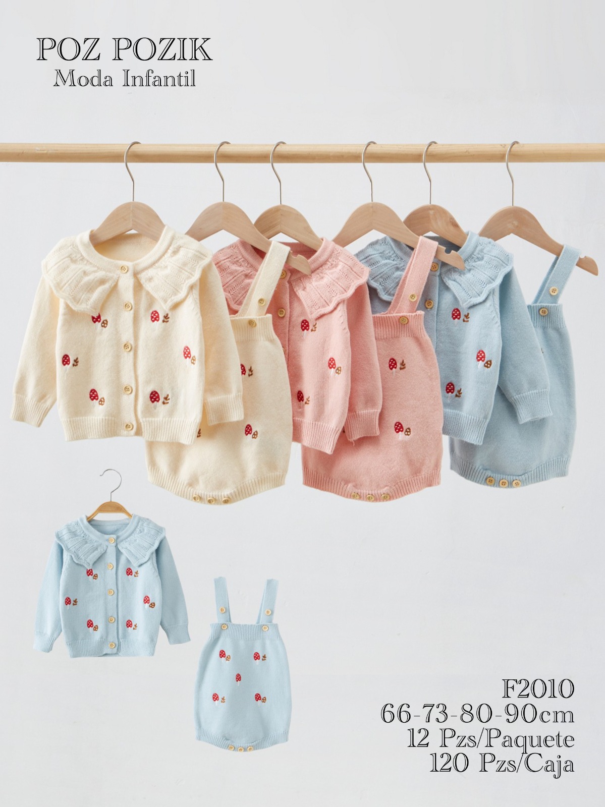 Conjunto de cardigan y overol para bebé con bordado de hongos-F2010