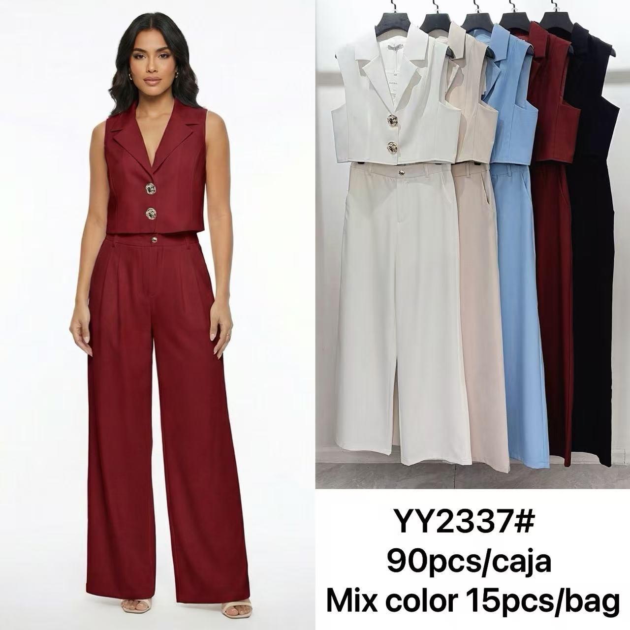 Conjunto de chaleco crop top sin mangas y pantalón de pierna ancha-YY2337