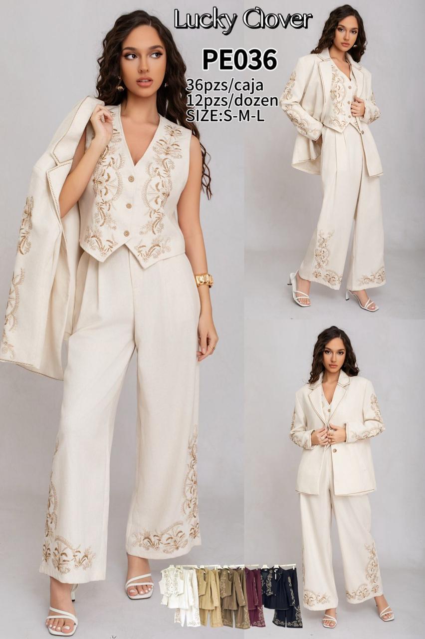 Conjunto de chaleco, pantalón y saco bordado para mujer-PE036