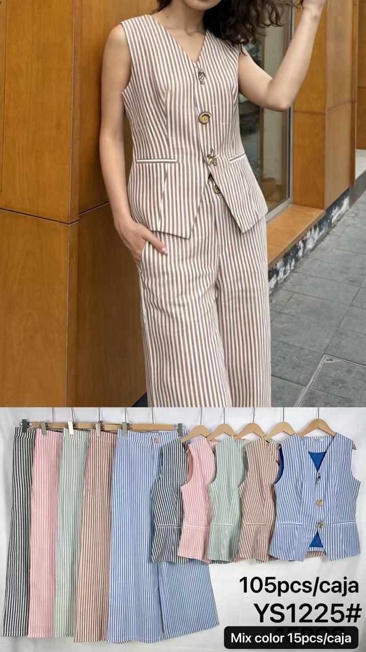 Conjunto de chaleco sin mangas a rayas y pantalón de pierna ancha-YS1225