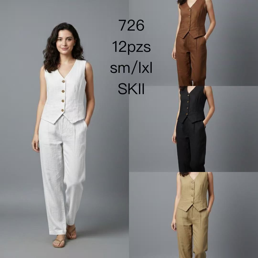 Conjunto de chaleco sin mangas y pantalón de lino-726