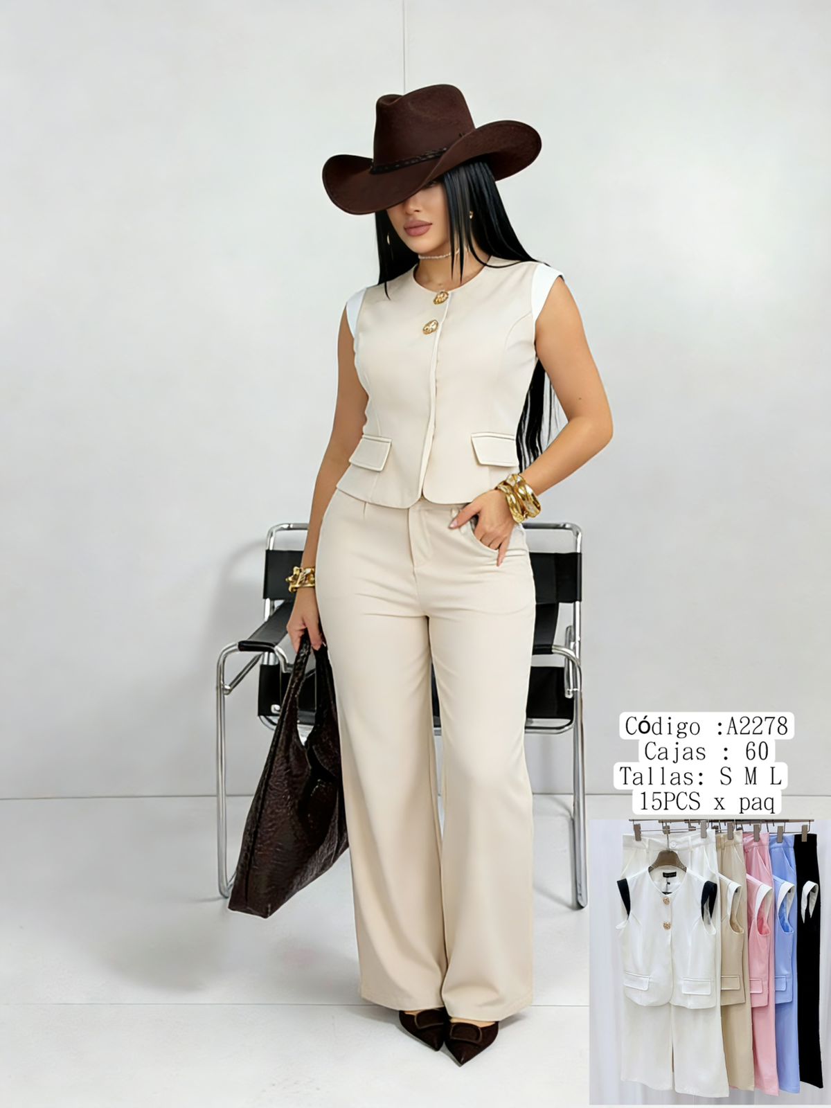 Conjunto de chaleco sin mangas y pantalón de vestir-A2278