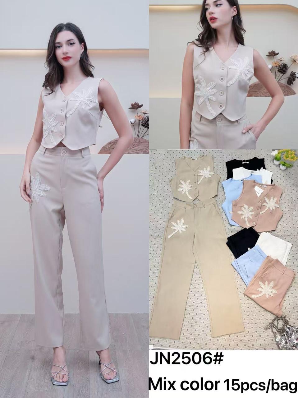 Conjunto de chaleco y pantalón con bordado floral-JN2506