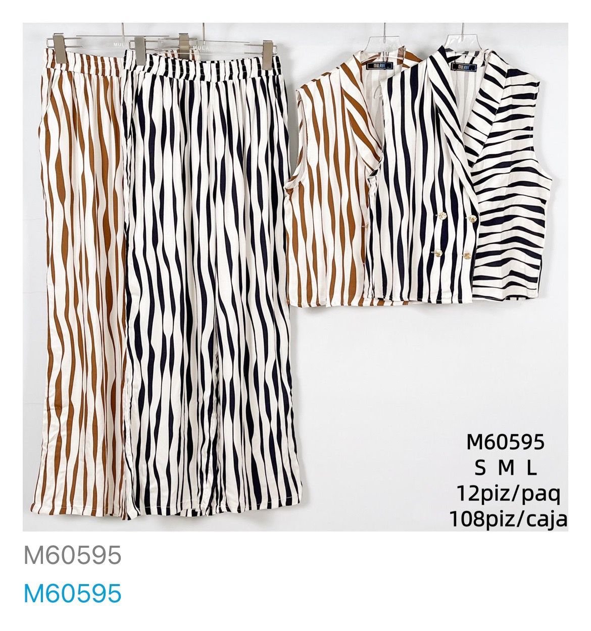 Conjunto de chaleco y pantalón con estampado de rayas-M60595