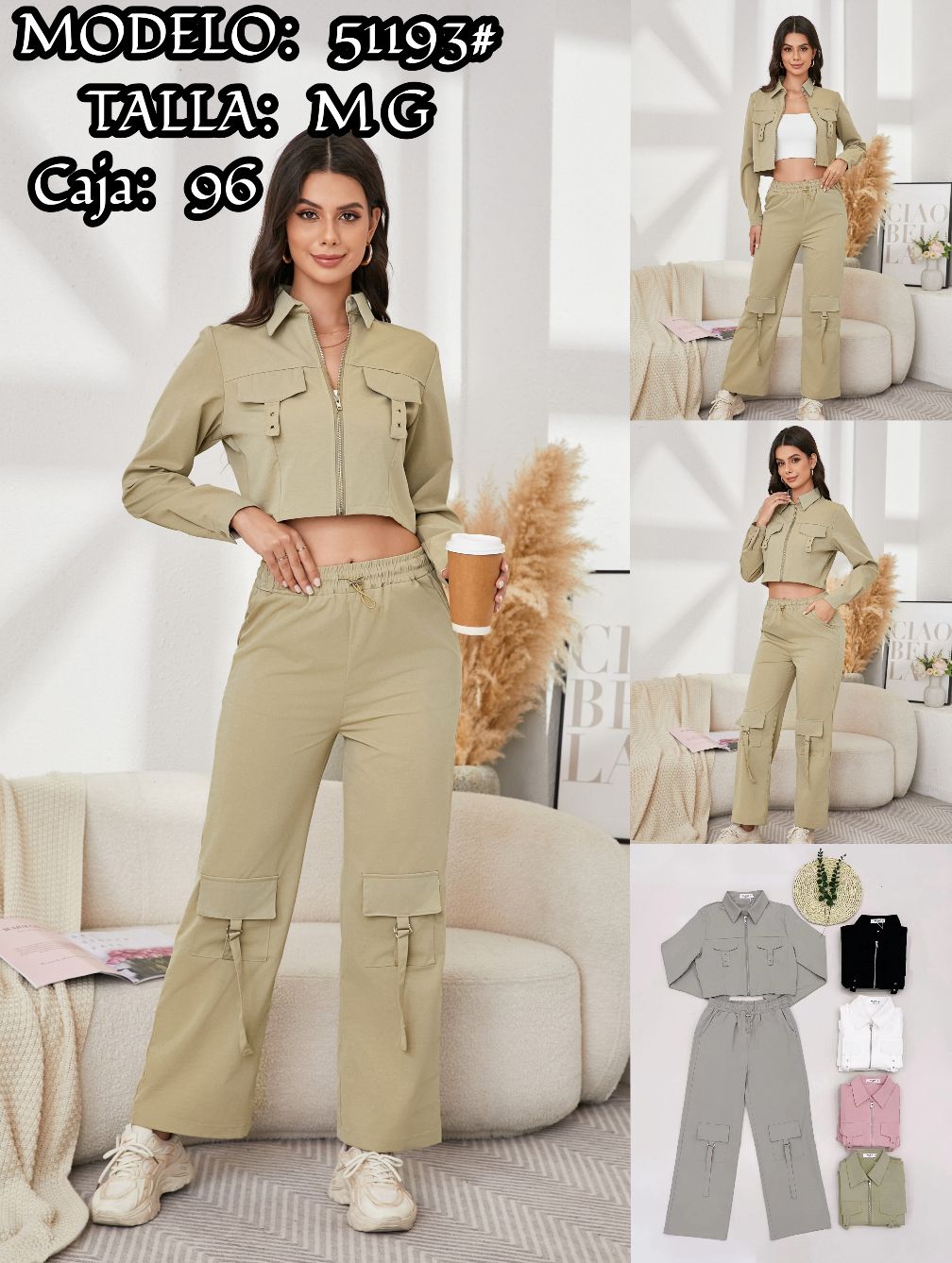 Conjunto de chaqueta y pantalón con bolsillos de carga-51193