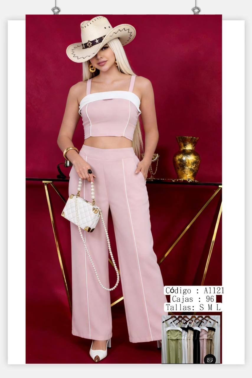 Conjunto de crop top sin mangas y pantalón de pierna ancha-A1121