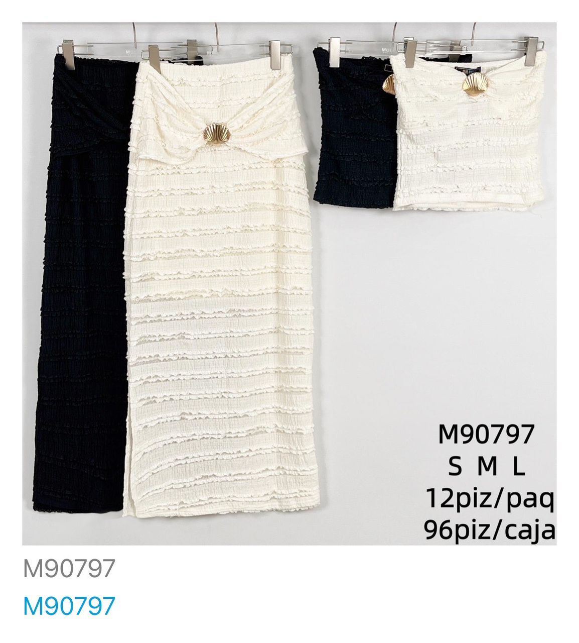 Conjunto de Falda Larga y Top Bandeau con Textura-M90797