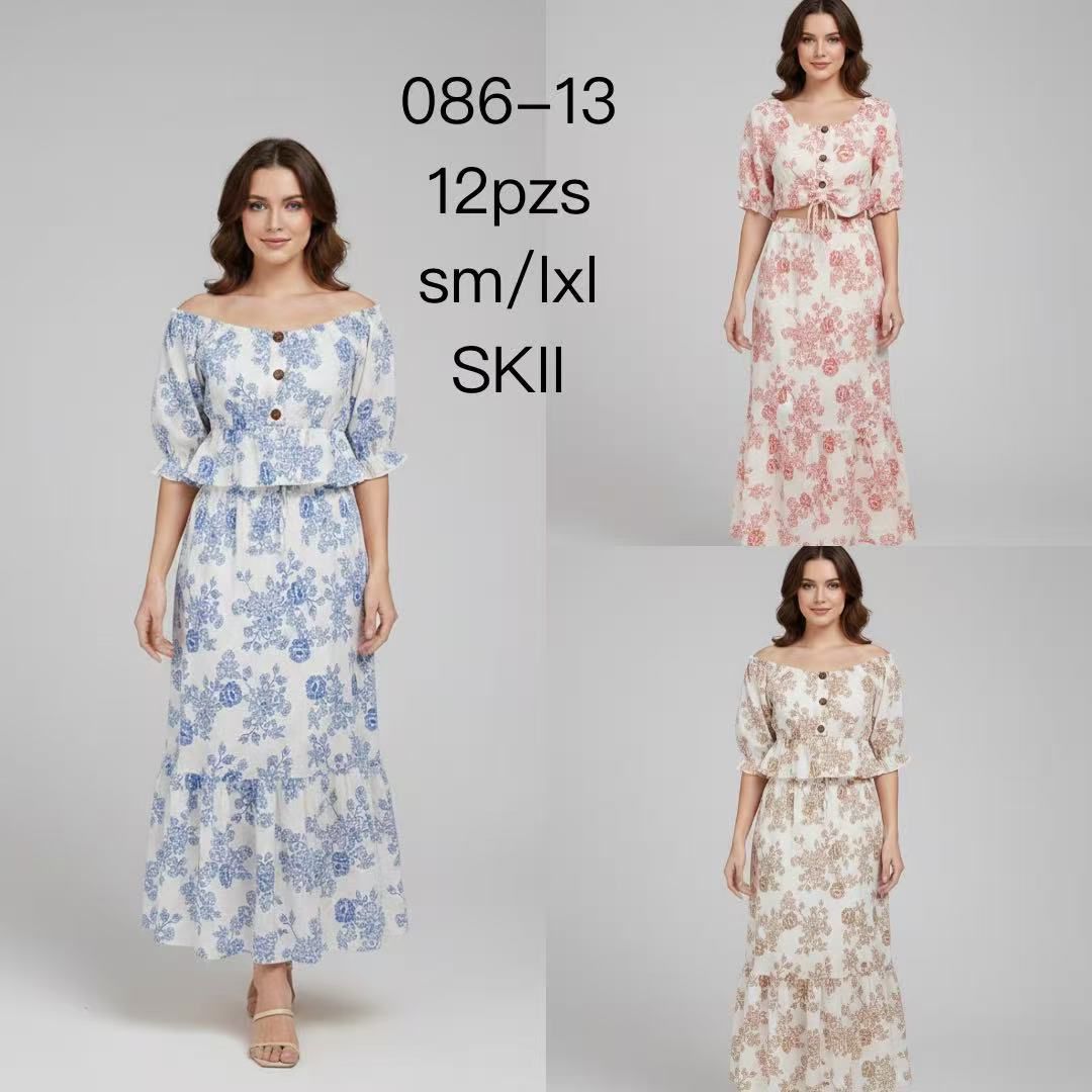 Conjunto de Falda Larga y Top Floreado Off-Shoulder-086-13