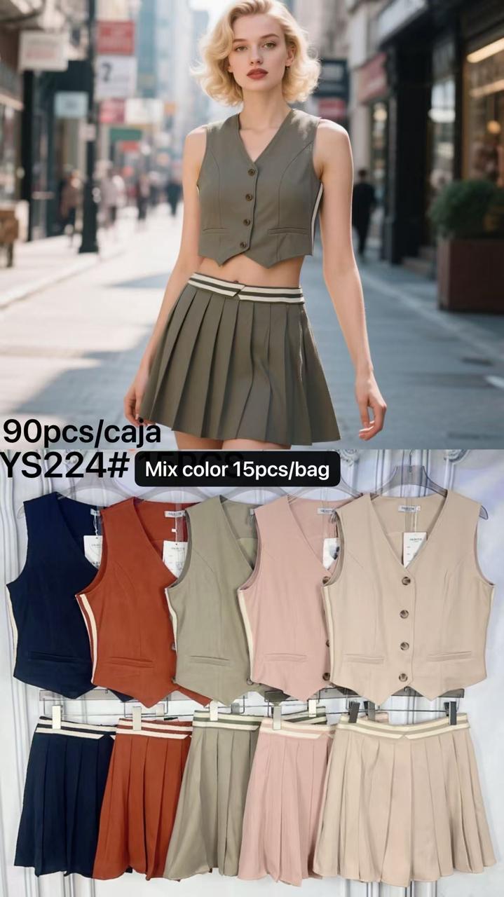 Conjunto de falda plisada y chaleco corto-YS224