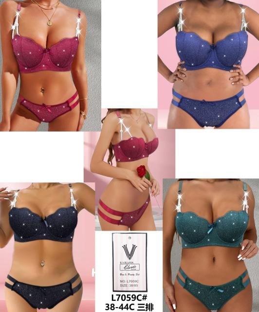 Conjunto de lencería brillante con tirantes decorativos-L7059C