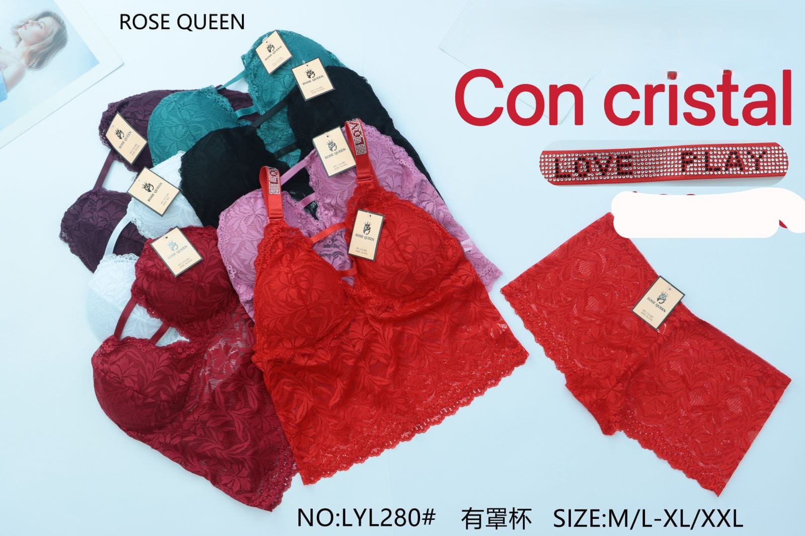 Conjunto de lencería de encaje con detalles de cristal-LYL280