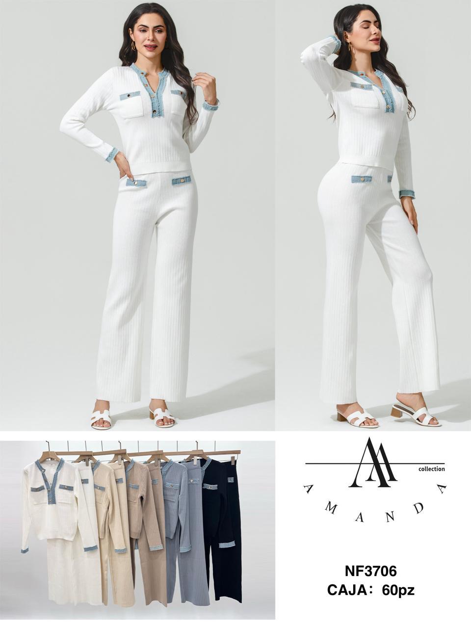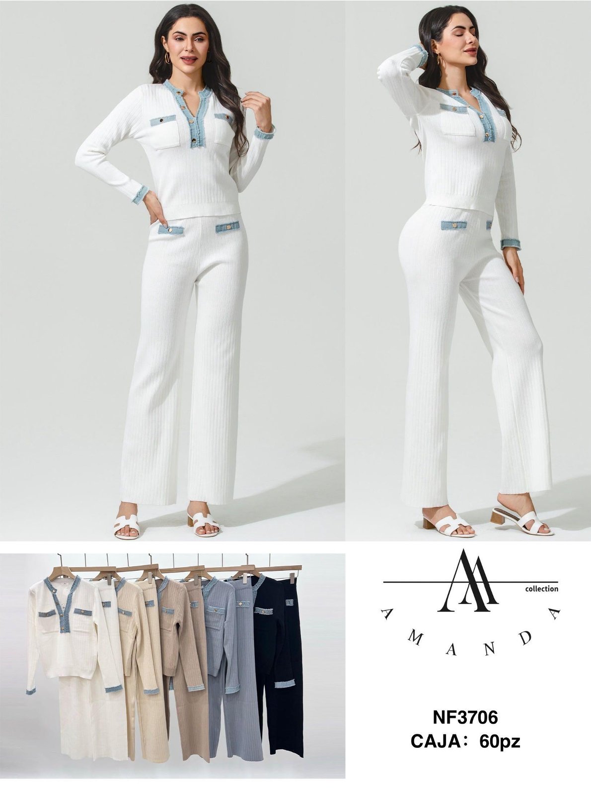 Conjunto de Pantalón y Blusa con Detalles Denim-NF3706