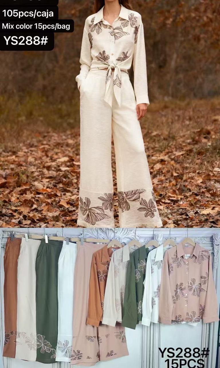 Conjunto de pantalón y blusa con estampado floral-YS288