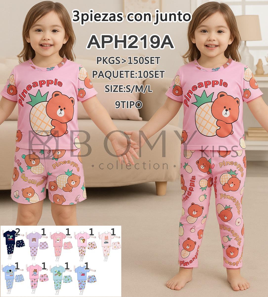 Conjunto de pijama de 3 piezas para niños con estampado de oso y piña-APH219A