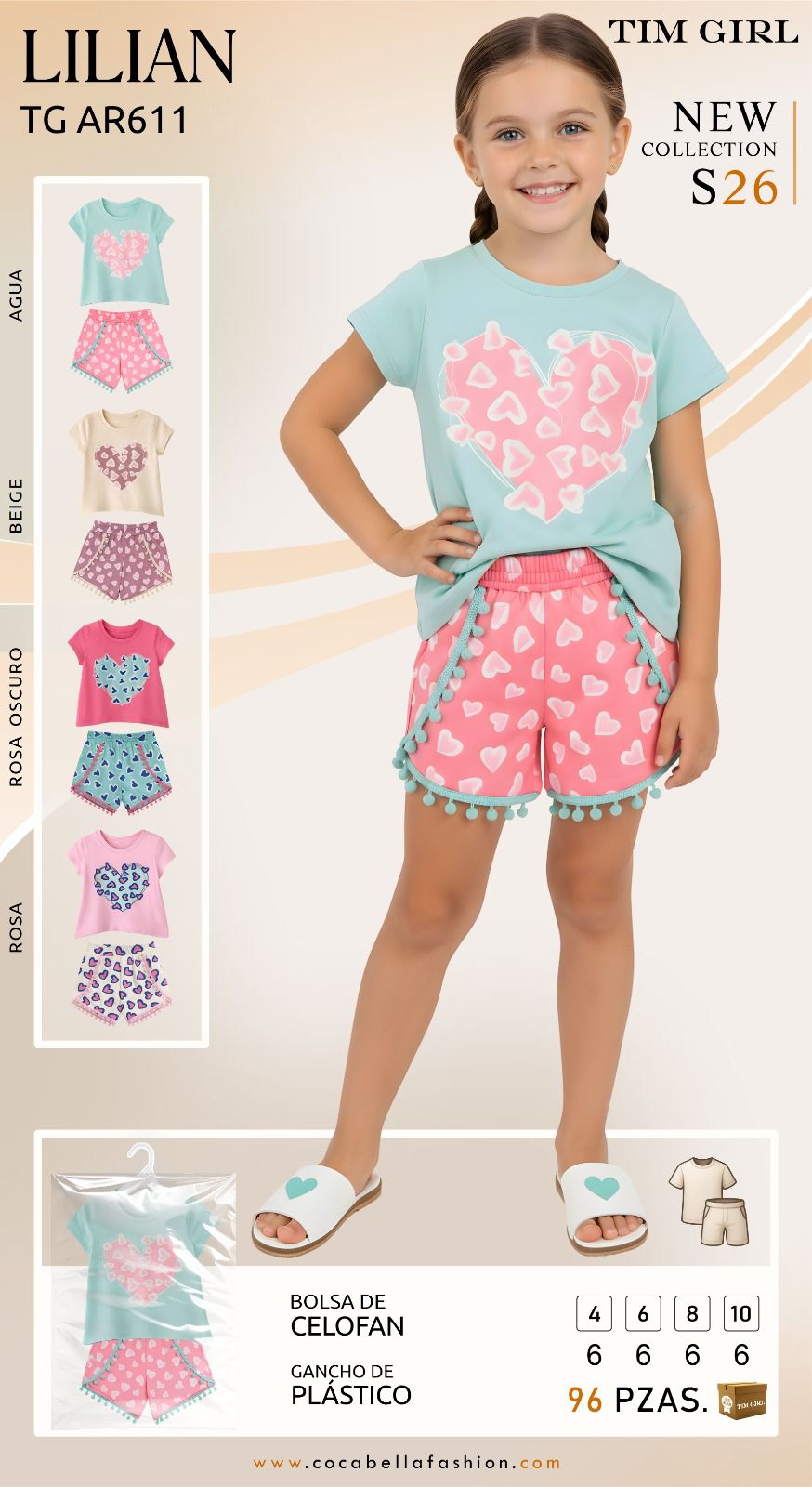 Marca: Coca Bella, Origen: Importado, Tallas: 4-6-8-10, Unidades por paquete: 24 Conjuntos por paquete