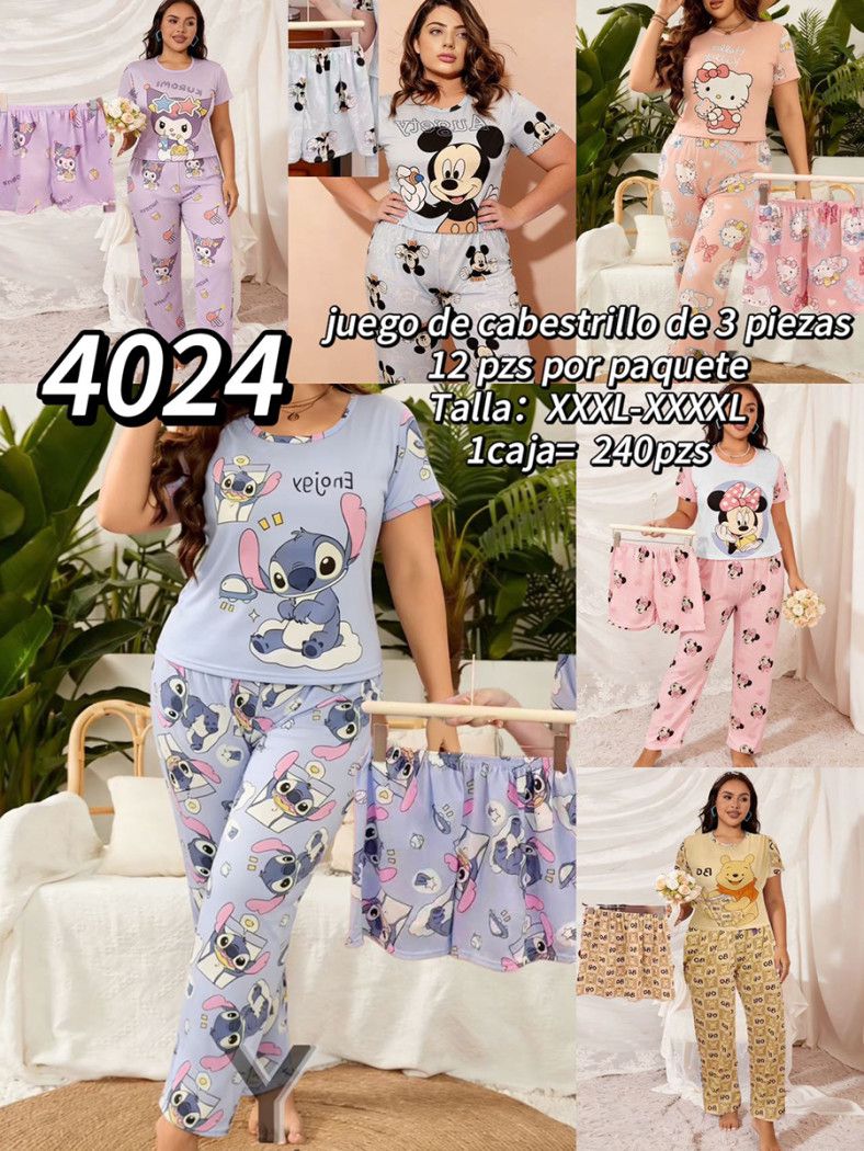 Conjunto de Pijama de Tres Piezas Estampado de Personajes-4024