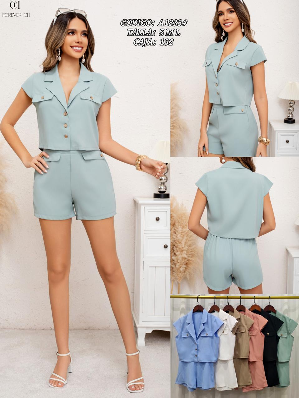 Conjunto de Short y Blusa con Botones-A1833