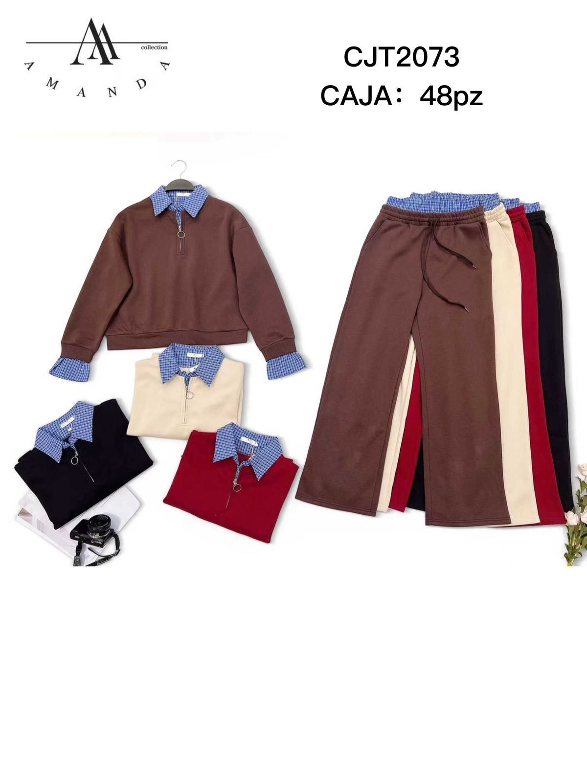 Conjunto de Sudadera y Pantalón con Cuello Camisero-CJT2073