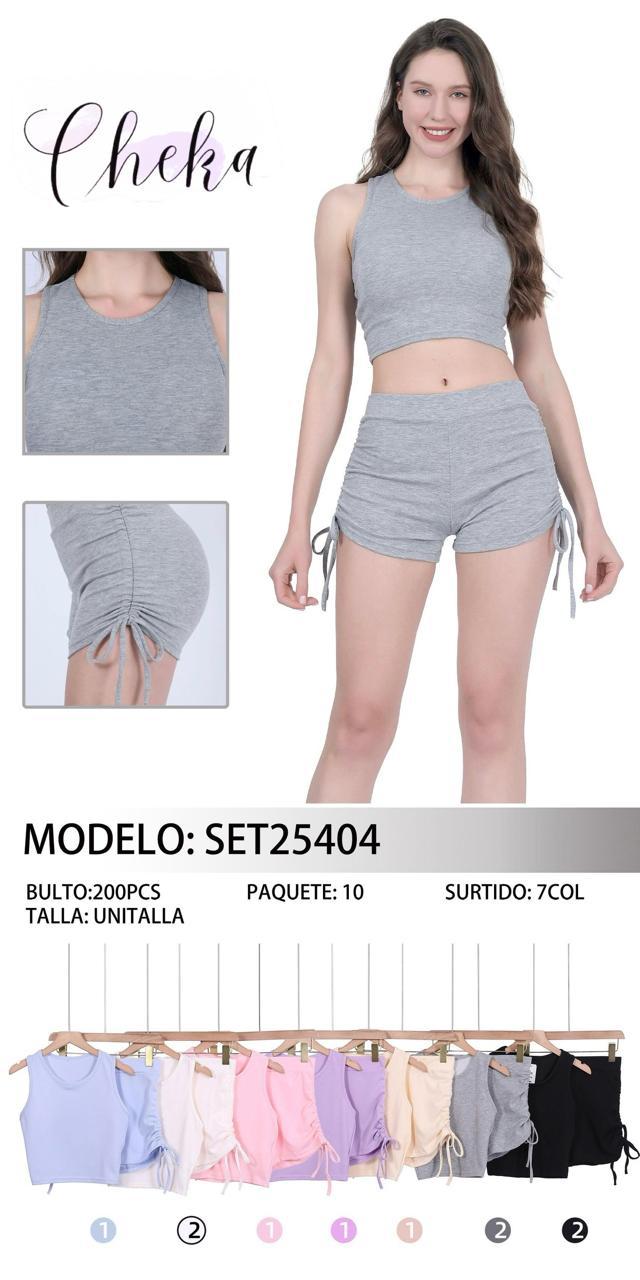 Conjunto de top corto y shorts con fruncido lateral-SET25404