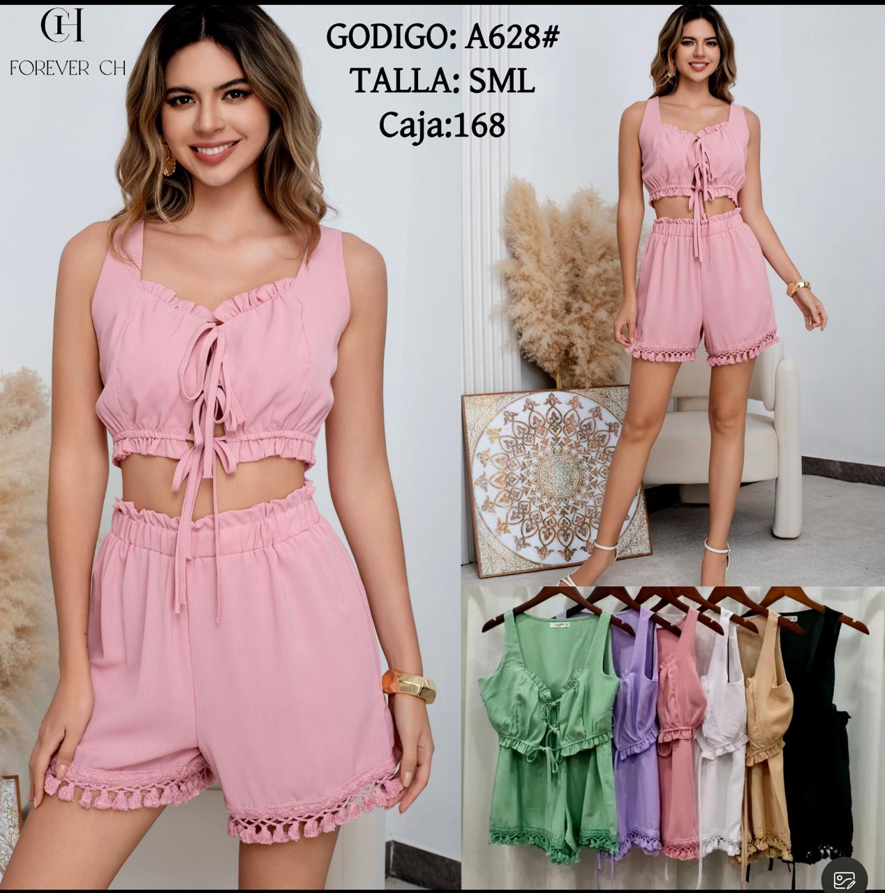 Conjunto de top crop con lazos y shorts con encaje-A628