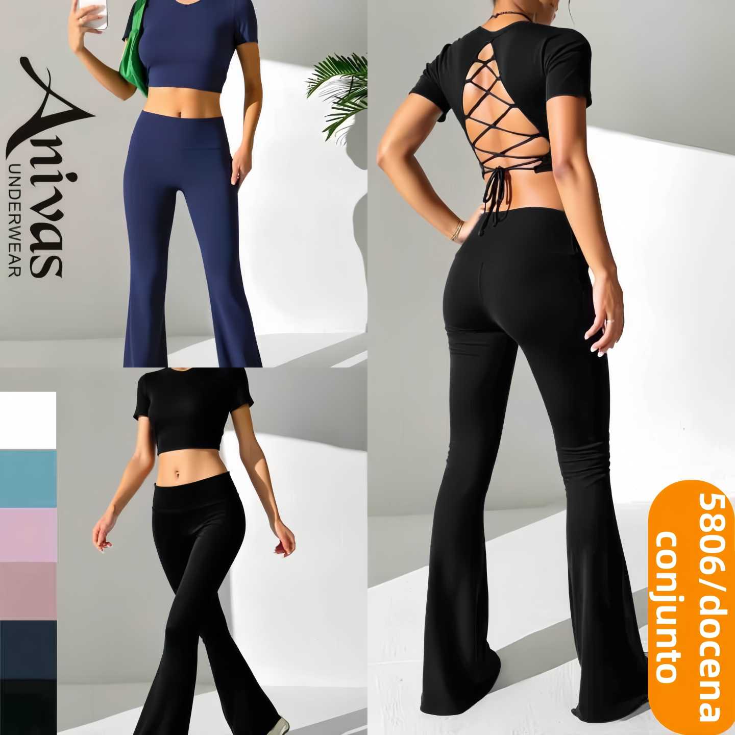 Conjunto de top crop y pantalón acampanado-5806