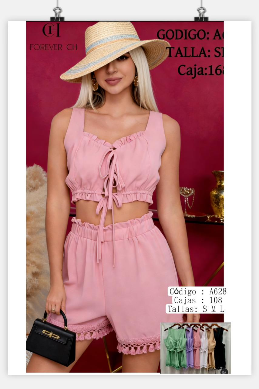 Conjunto de top de tirantes y shorts-A628