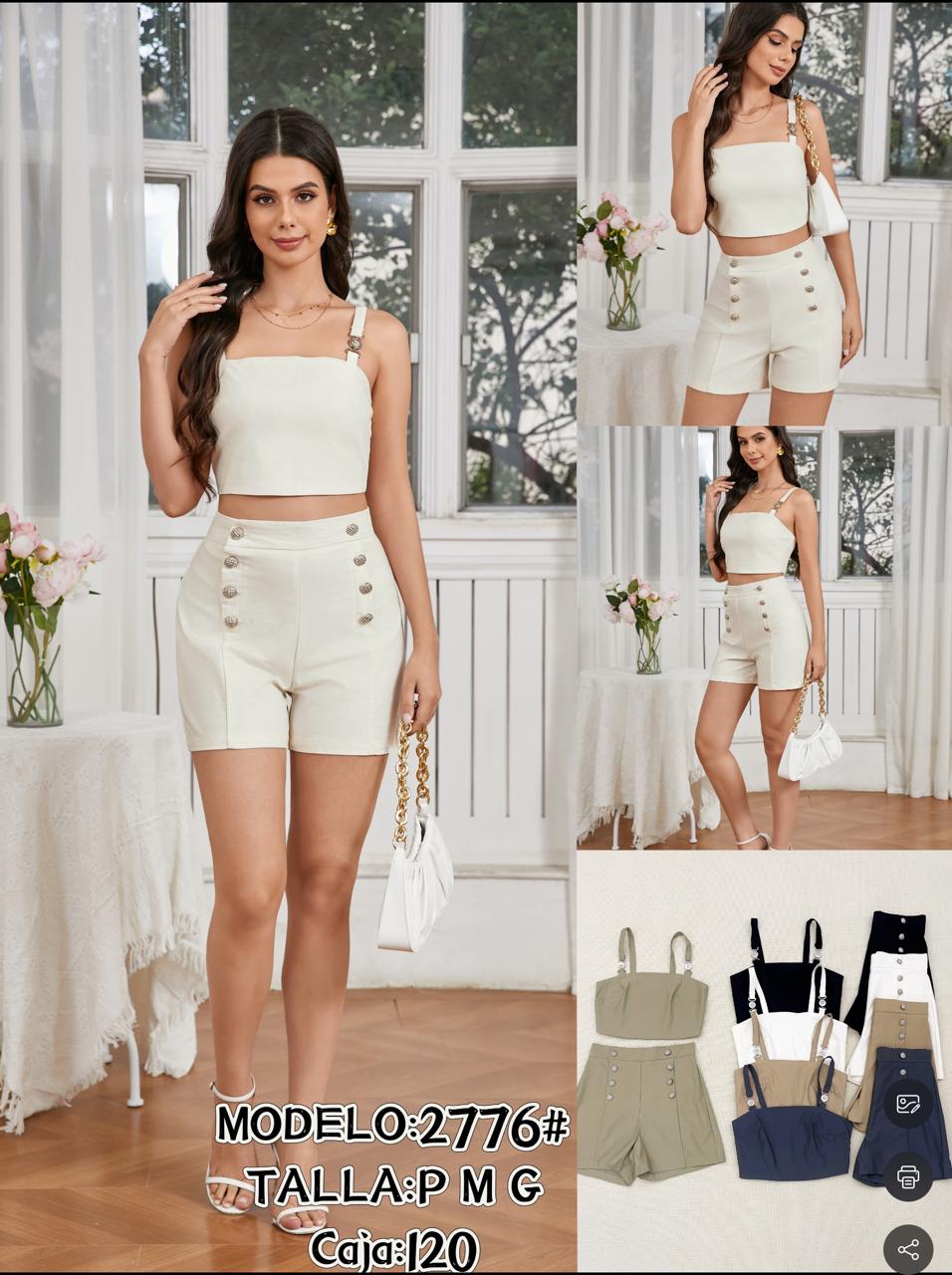 Conjunto de Top de Tirantes y Shorts con Botones-2776