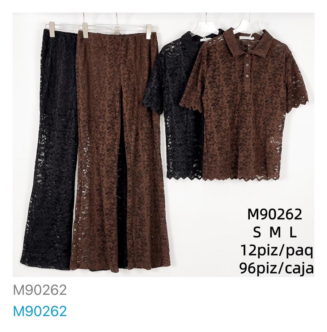 Conjunto de Top Polo y Pantalones de Encaje-M90262