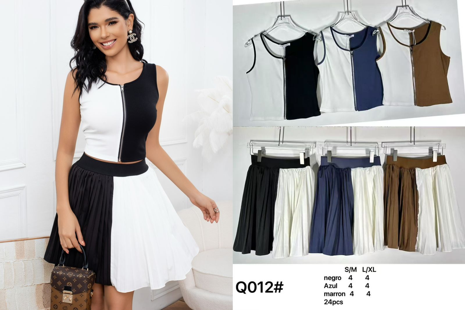 Conjunto de top sin mangas y falda plisada-Q012