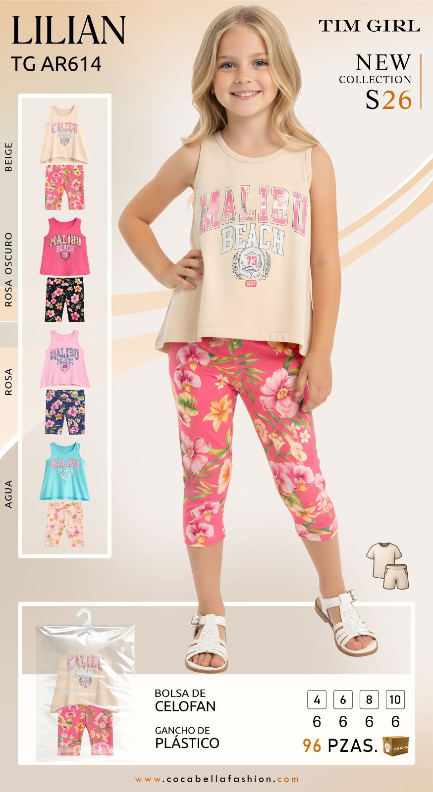 Marca: Coca Bella, Origen: Importado, Tallas: 4-6-8-10, Unidades por paquete: 24 Conjuntos por paquete