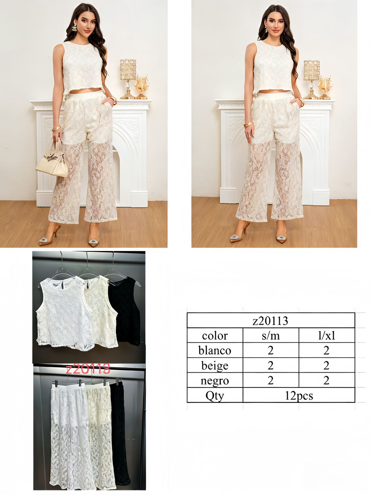 Conjunto de top sin mangas y pantalón de encaje-Z20113