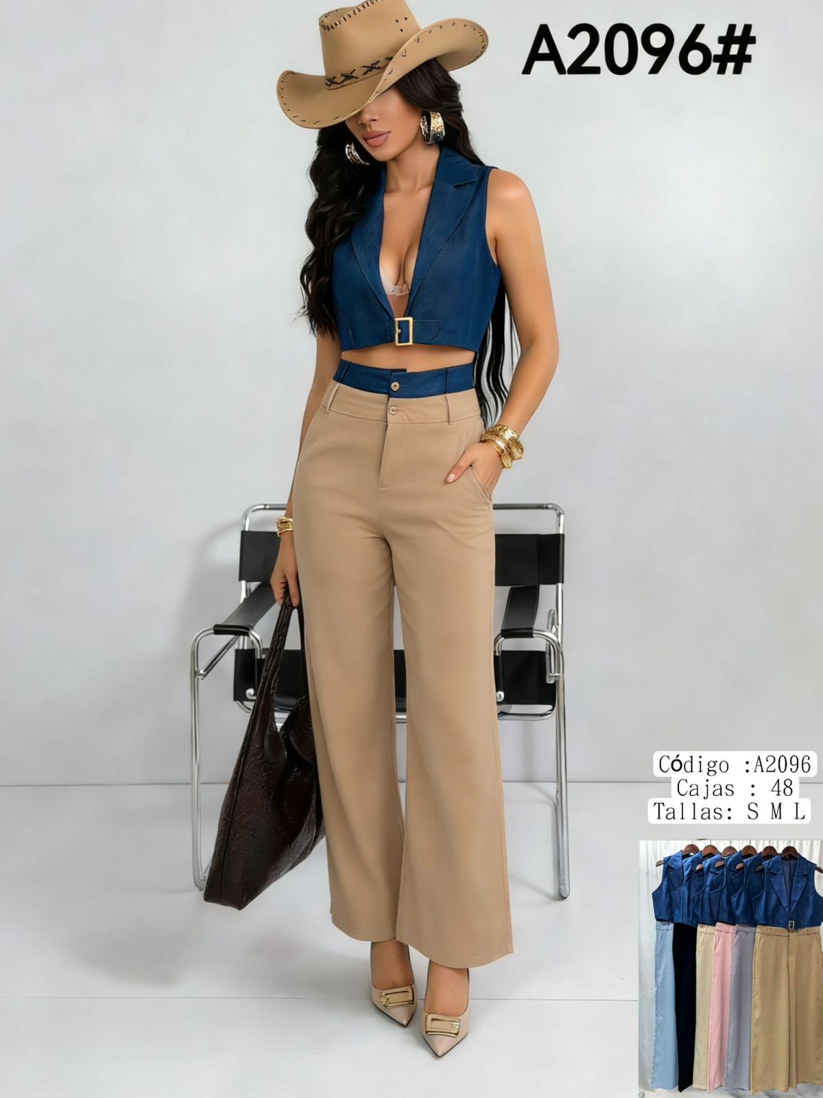 Conjunto de top sin mangas y pantalón de pierna ancha-A2096