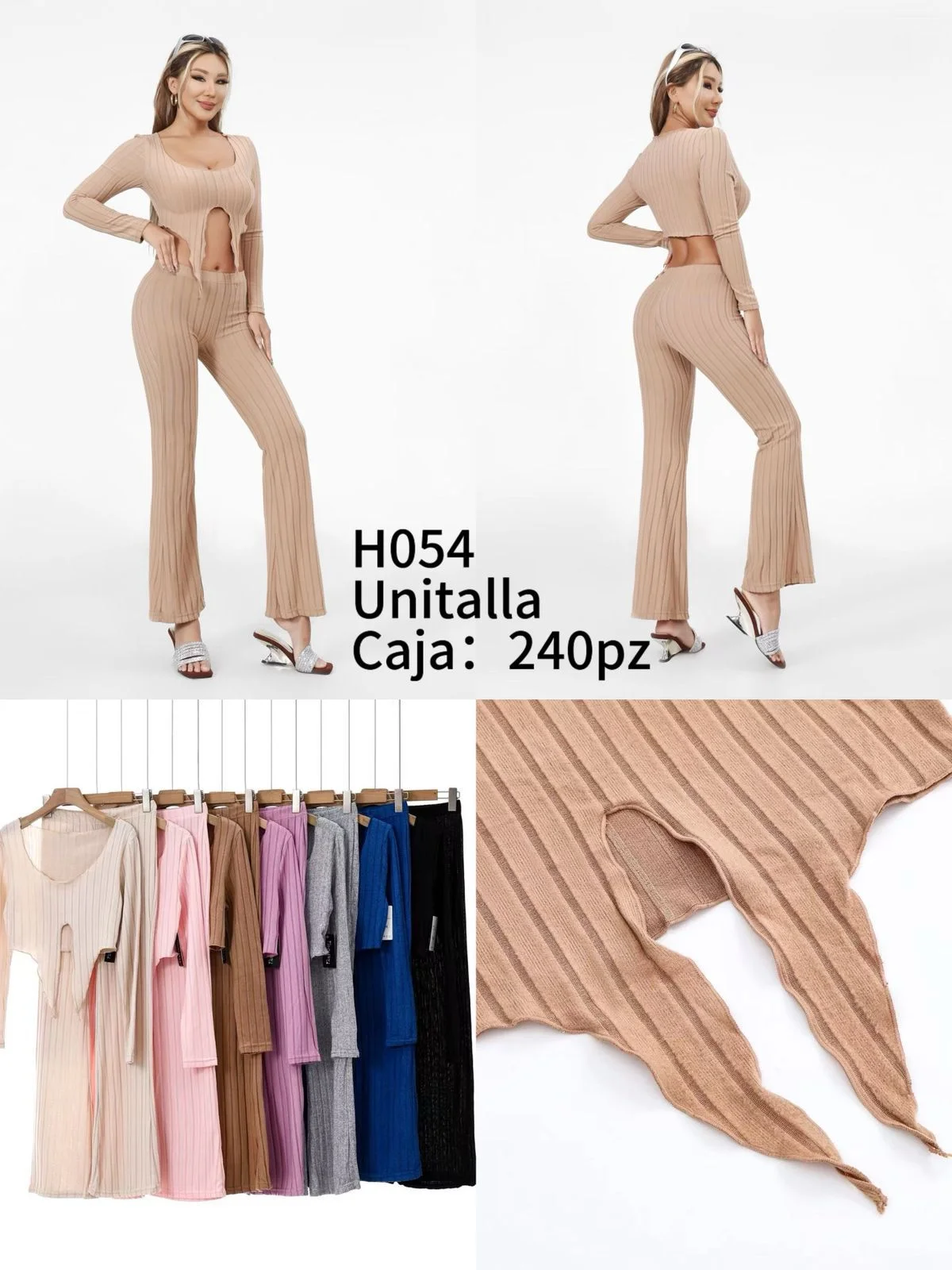 Conjunto de top y pantalón acampanado con abertura-H054