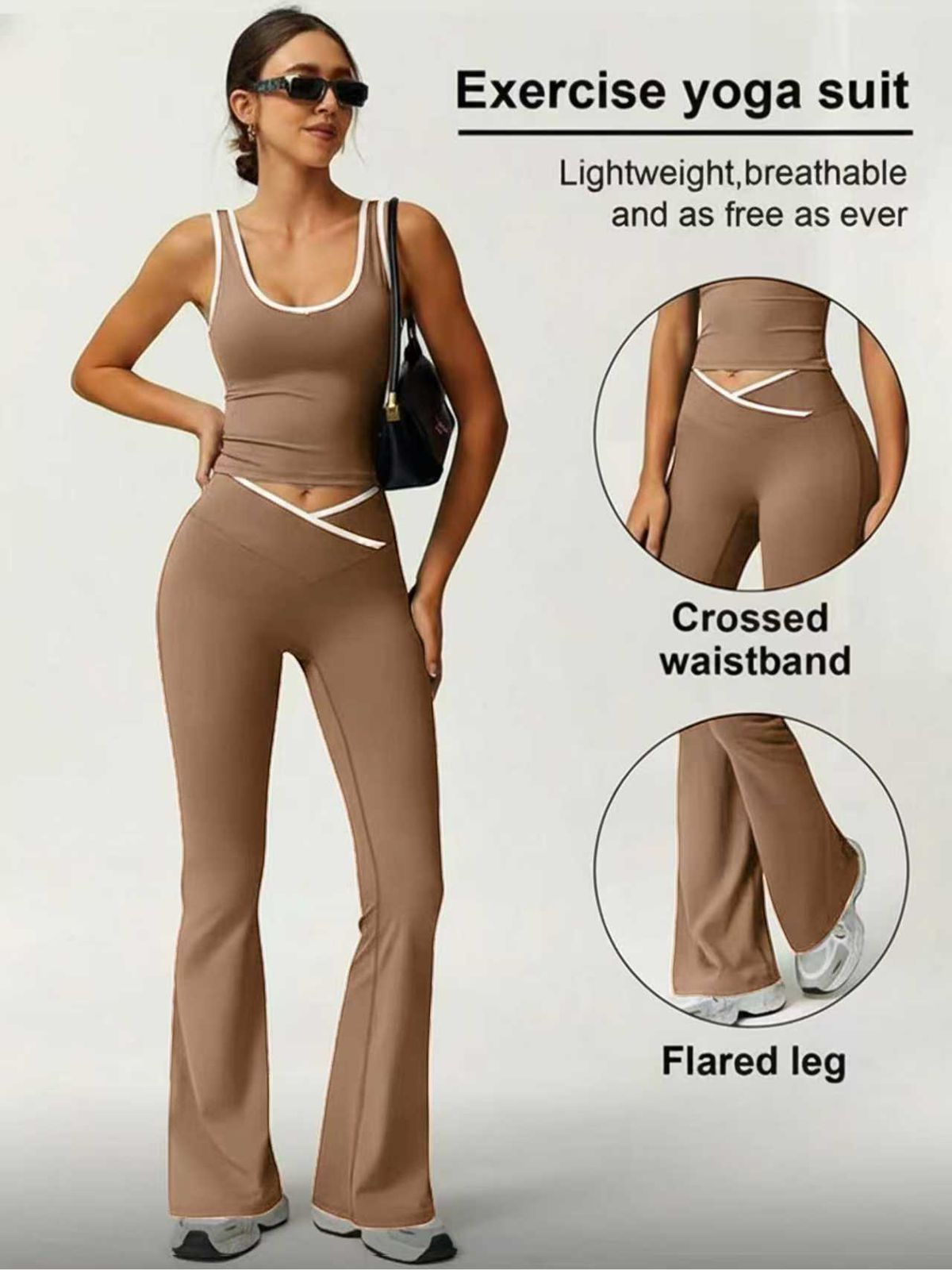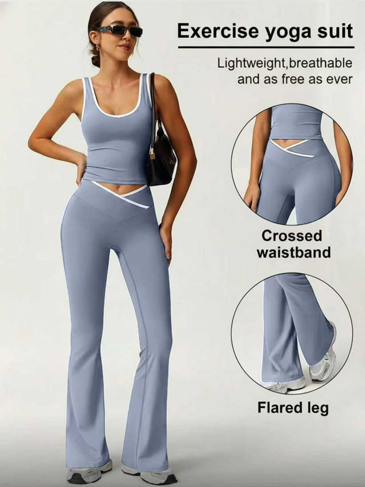 Conjunto de chaleco y pantalón palazzo para mujer-AS620