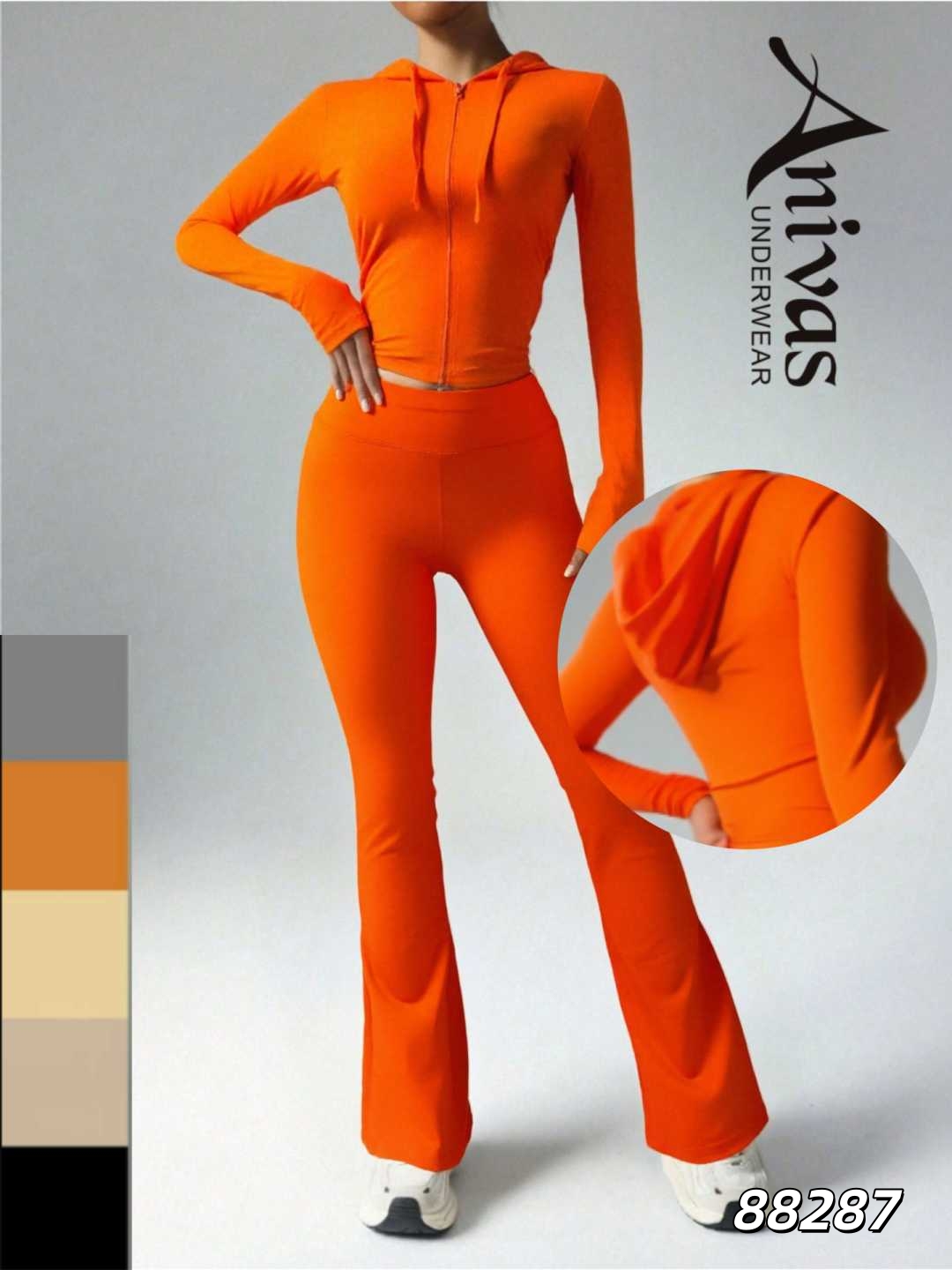 Conjunto deportivo con sudadera con capucha y pantalón acampanado-88287