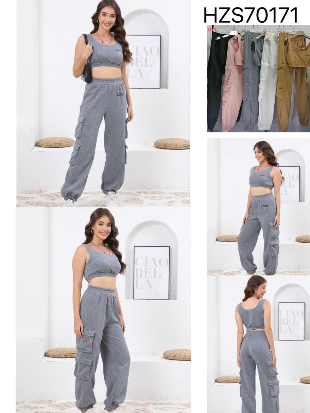 Conjunto deportivo crop top y pantalones cargo-70171