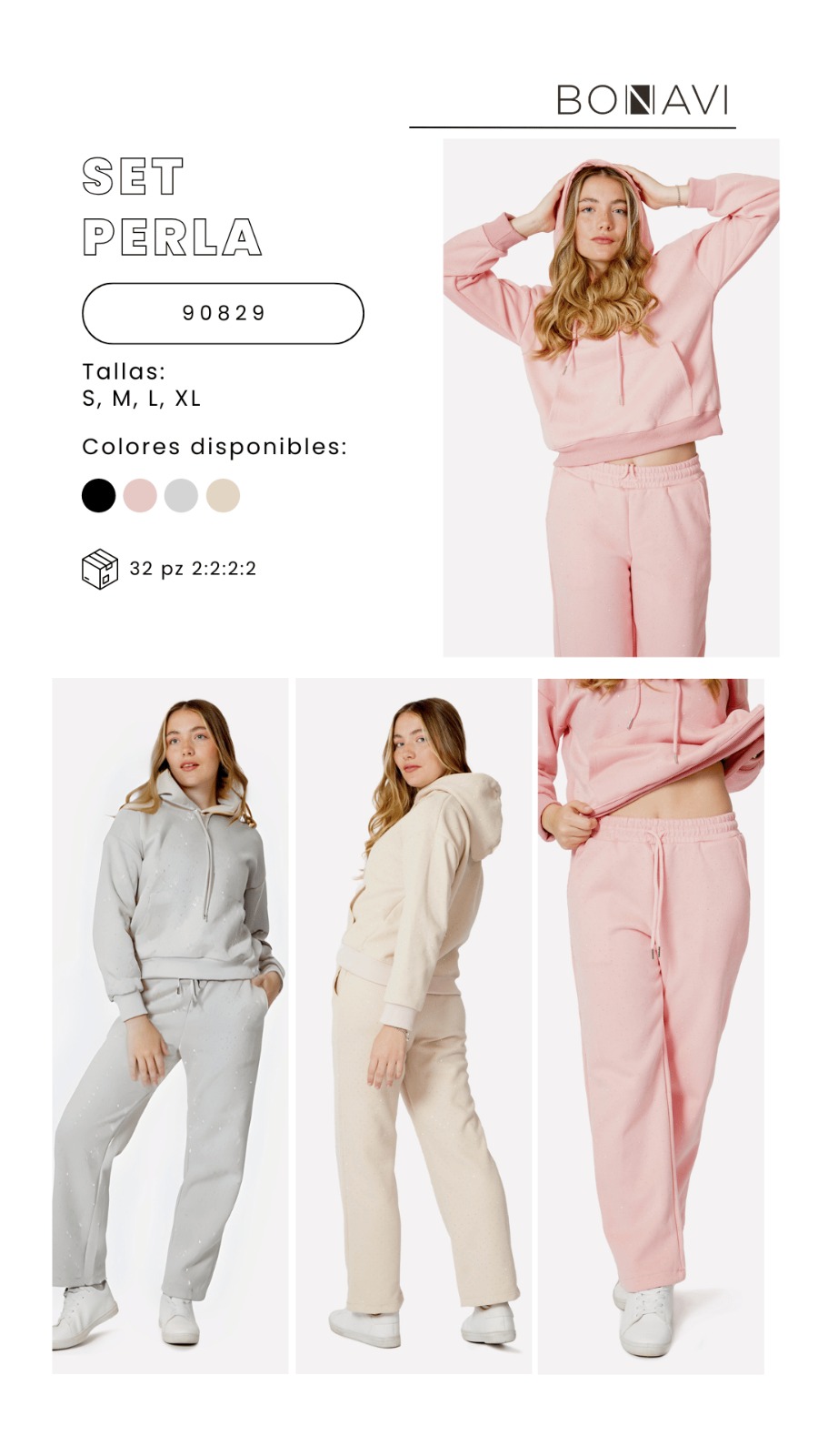 Marca: Bonavi, Origen: Importado, Tallas: S-M-L-XL, Unidades por paquete: 16 Conjuntos por paquete