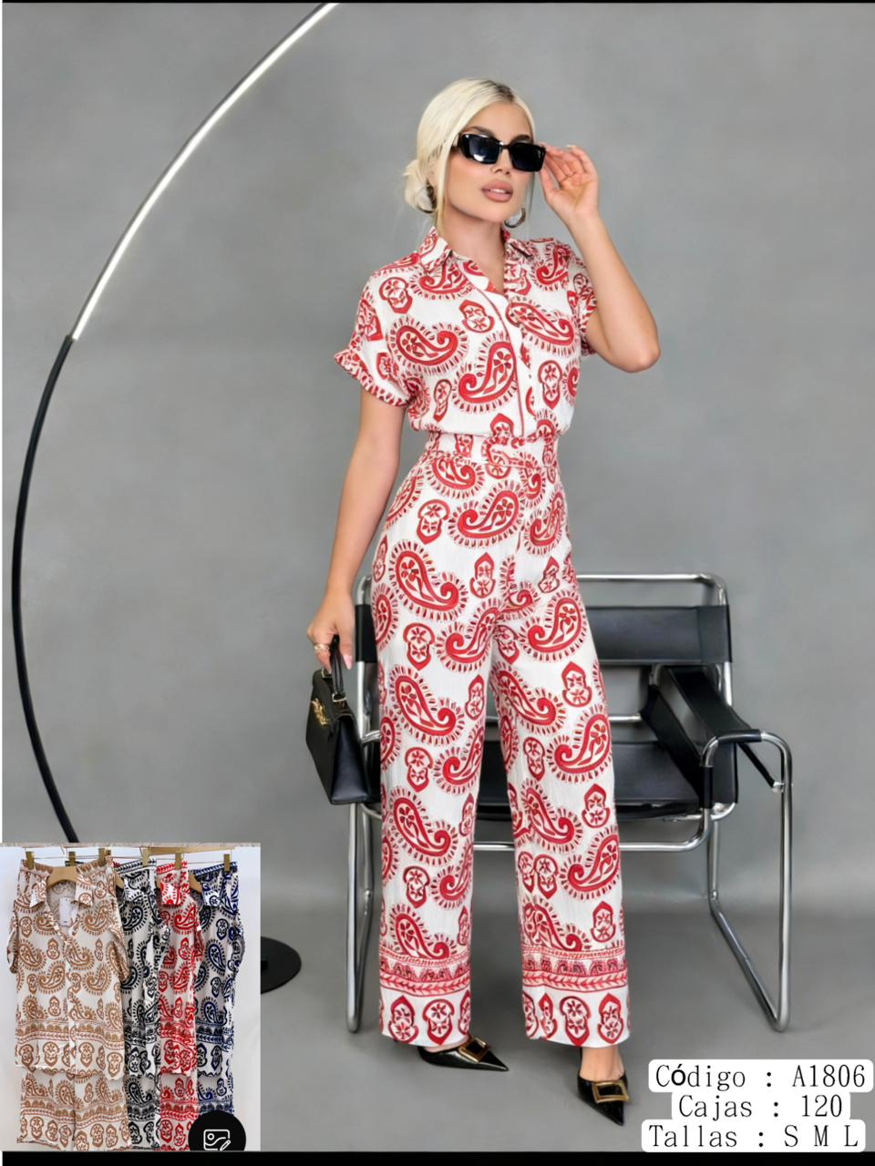 Conjunto estampado de camisa y pantalón-A1806
