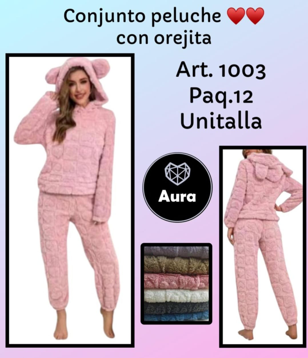 Marca: Aura, Origen: Importado, Tallas: UNITALLA, Unidades por paquete: 12 Conjuntos por paquete