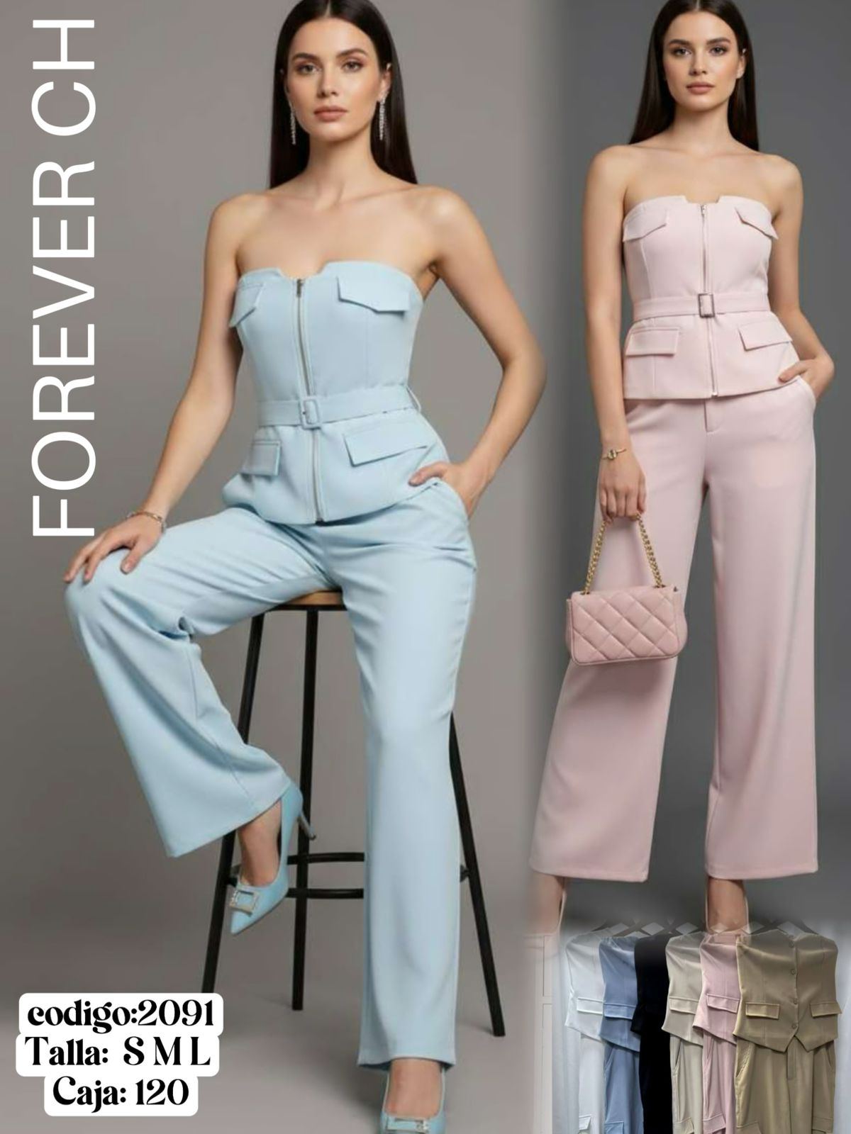 Conjunto strapless con cinturón-A2091