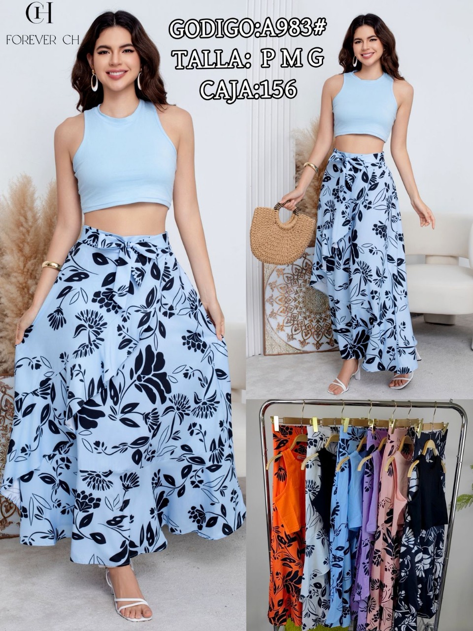 Conjunto top y falda con estampado floral-A983