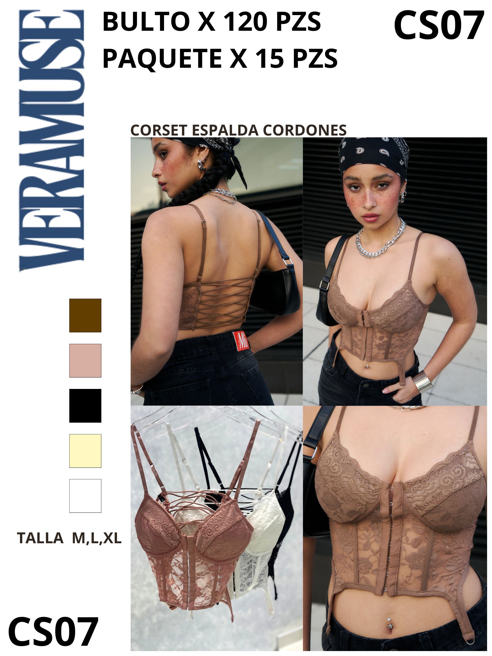 Marca: VERAMUSE, Origen: Importado, Tallas: M-L-XL, Unidades por paquete: 15 Piezas por paquete