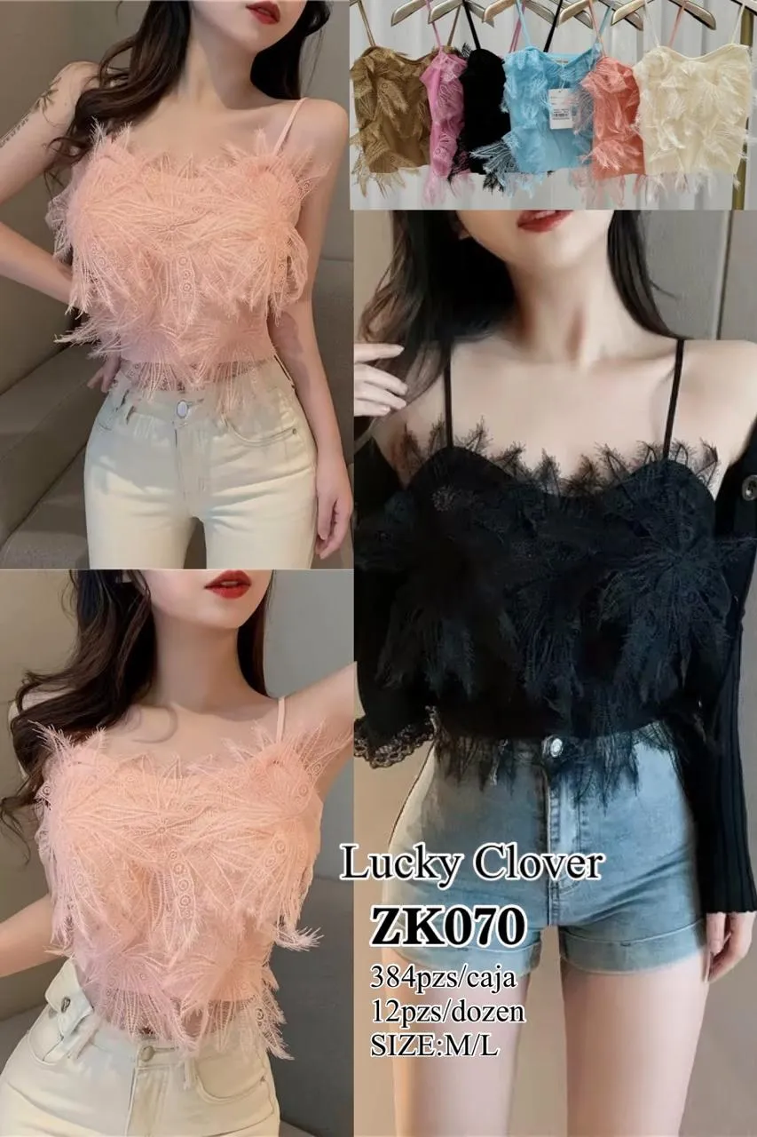 Crop Top de encaje con flecos-ZK070