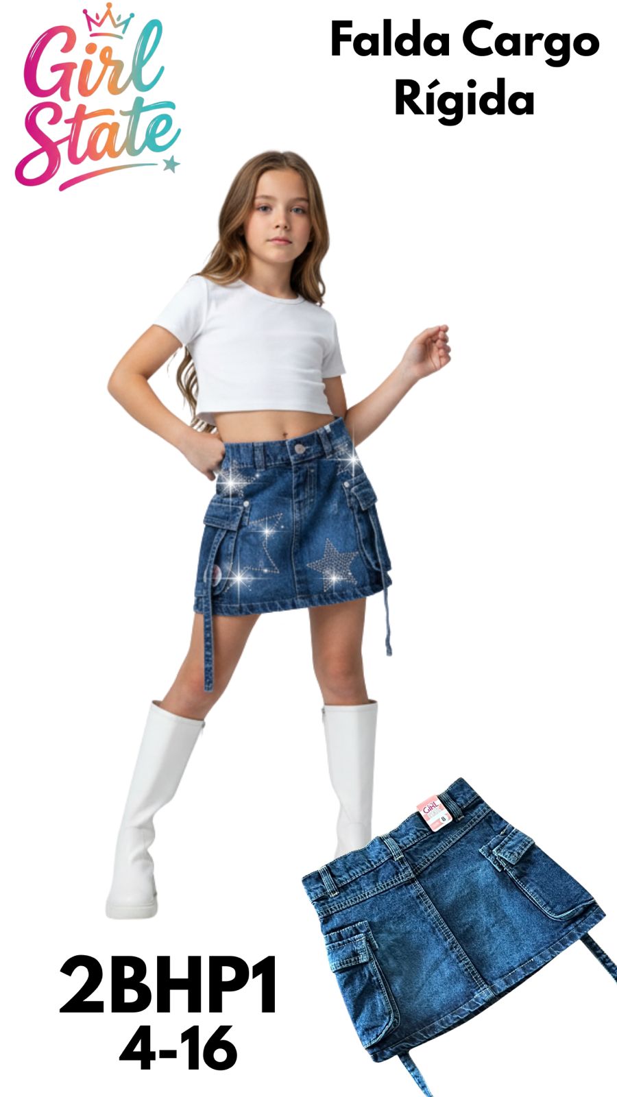 Falda Cargo Rígida de Mezclilla con Estrellas Brillantes-2BHP1